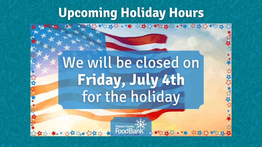CCFB, including our Fresh2You Mobile Market at the Lighthouse Youth Center in Oxford and Kennett Area YMCA, will be closed on July 4th in recognition of the holiday.