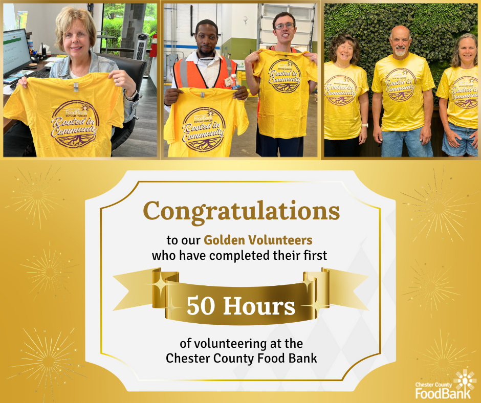 Congratulations to our newest Golden Volunteers who have completed their first 50 hours of volunteer service at the Chester County Food Bank!