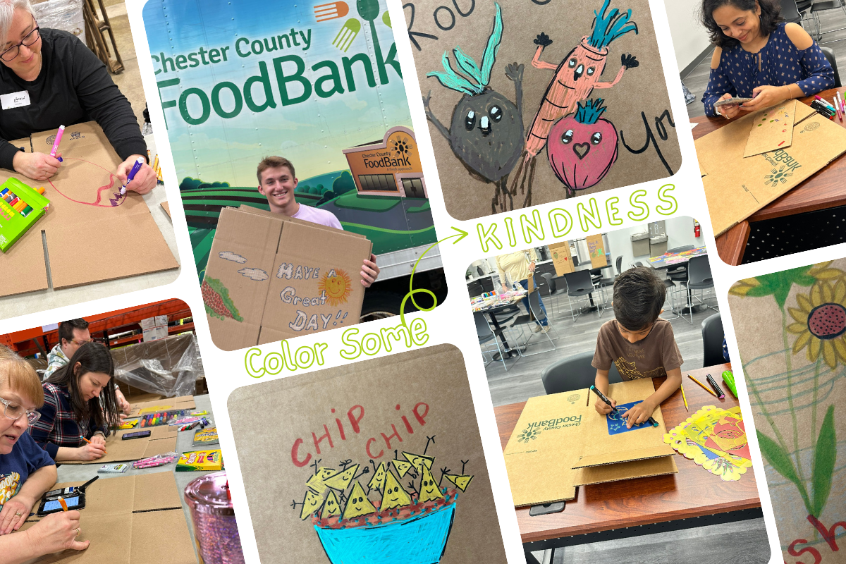 This is a wonderful service activity for all ages, especially for younger children under our volunteer minimum of 16 years of age. With nearly 800 boxes packed each month, we have plenty of room for your colorful contributions! Additionally, consider hosting a food drive or virtual food drive alongside your Color Some Kindness or making a donation to support programs like our Grocery Boxes for Seniors.