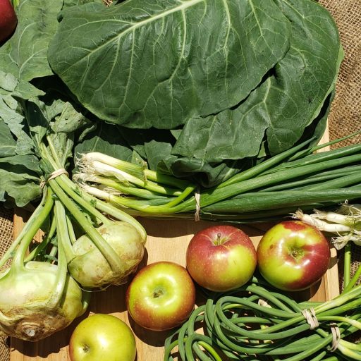 Kohlrabi is related to broccoli and cabbage but has a sweeter taste. It can be eaten raw or cooked.
