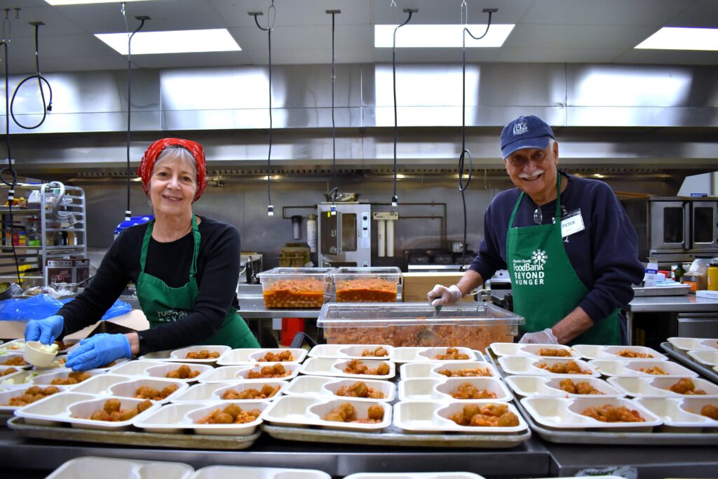 Our 2500-square-foot Community Kitchen supports our mission by creating nutritious meals for Meals on Wheels, Simple Suppers, Summer Meals for Kids, and our largest meal program Sunshine Meals. Each meal is delicious and nutritional, often featuring fresh produce grown at our CCFB farm sites. Meals on Wheels are hot meals that are home delivered while Simple Suppers, Summer Meals, and Sunshine meals are frozen microwavable meals that can be prepared as needed. Each year we prepare and distribute approximately 100,000 meals.