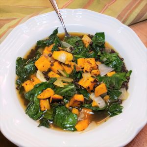 Sweet potatoes, collard greens, and lentils make for a delicious, hearty soup that is comforting, filling, and perfect for a chilly day. Instead of collard greens, you could also use kale, chard, or spinach.